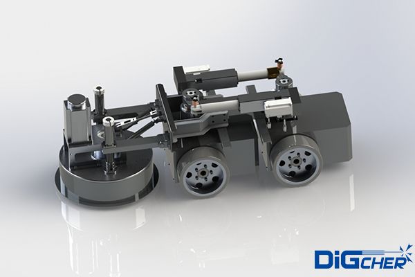 機(jī)器人采用四輪驅(qū)動,負(fù)載能力強(qiáng),可在在垂直面及天花板面任意行走;電機(jī)驅(qū)動,具有穩(wěn)定可靠的立面吸附措施;機(jī)器人前端的毛刷盤負(fù)責(zé)清理和回收模板表面的粉塵和殘渣。