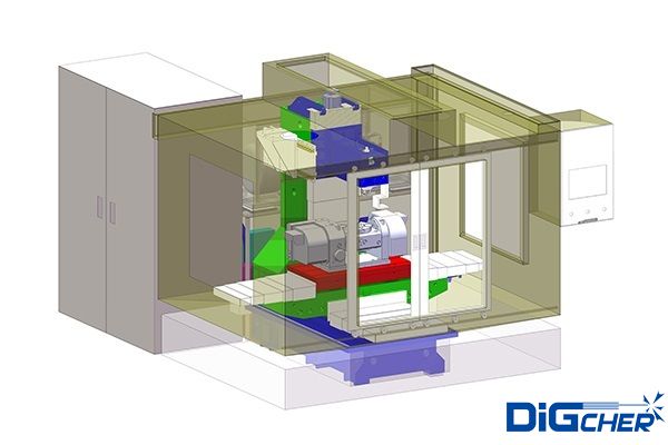 機(jī)床部分:使用BT40通用刀柄作為高壓水噴頭載體,配以自動(dòng)刀庫(kù)換刀系統(tǒng)。高精度電腦數(shù)控分度盤(pán)提高加工精度和加工效率。